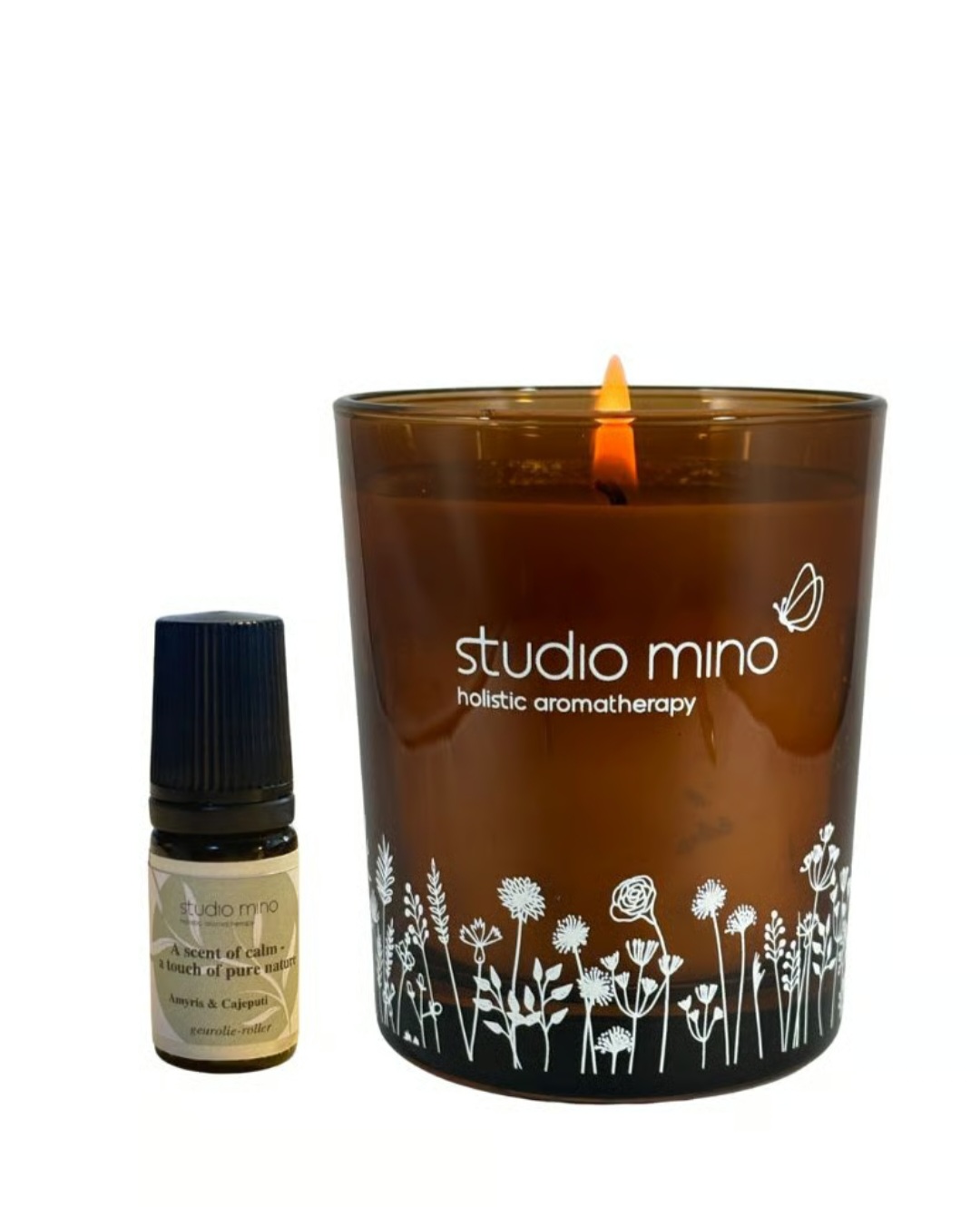 Aromatherapie kaars – Wood serenity + GRATIS parfum-olie roller