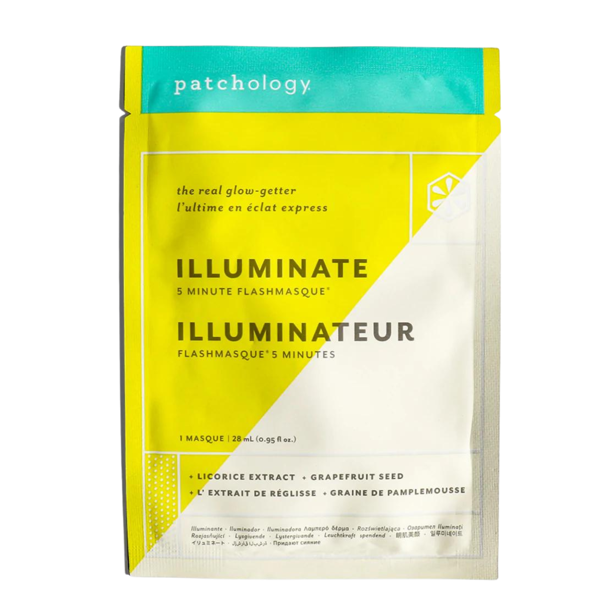 The real glowgetter! Met de FlashMasque Illuminate van Patchology is er geen excuus meer voor een doffe huid: stuur essentiële ingrediënten zoals vitamine C, zoethout en grapefruitzaadextracten rechtstreeks naar je huid. Een vliesmasker ontworpen om in slechts 5 minuten de teint te egaliseren en er nieuw leven in te blazen. Verhelder je blik, zowel van binnen als van buiten. Ideaal voor: een doffe, matte huid en ongelijkmatige teint.